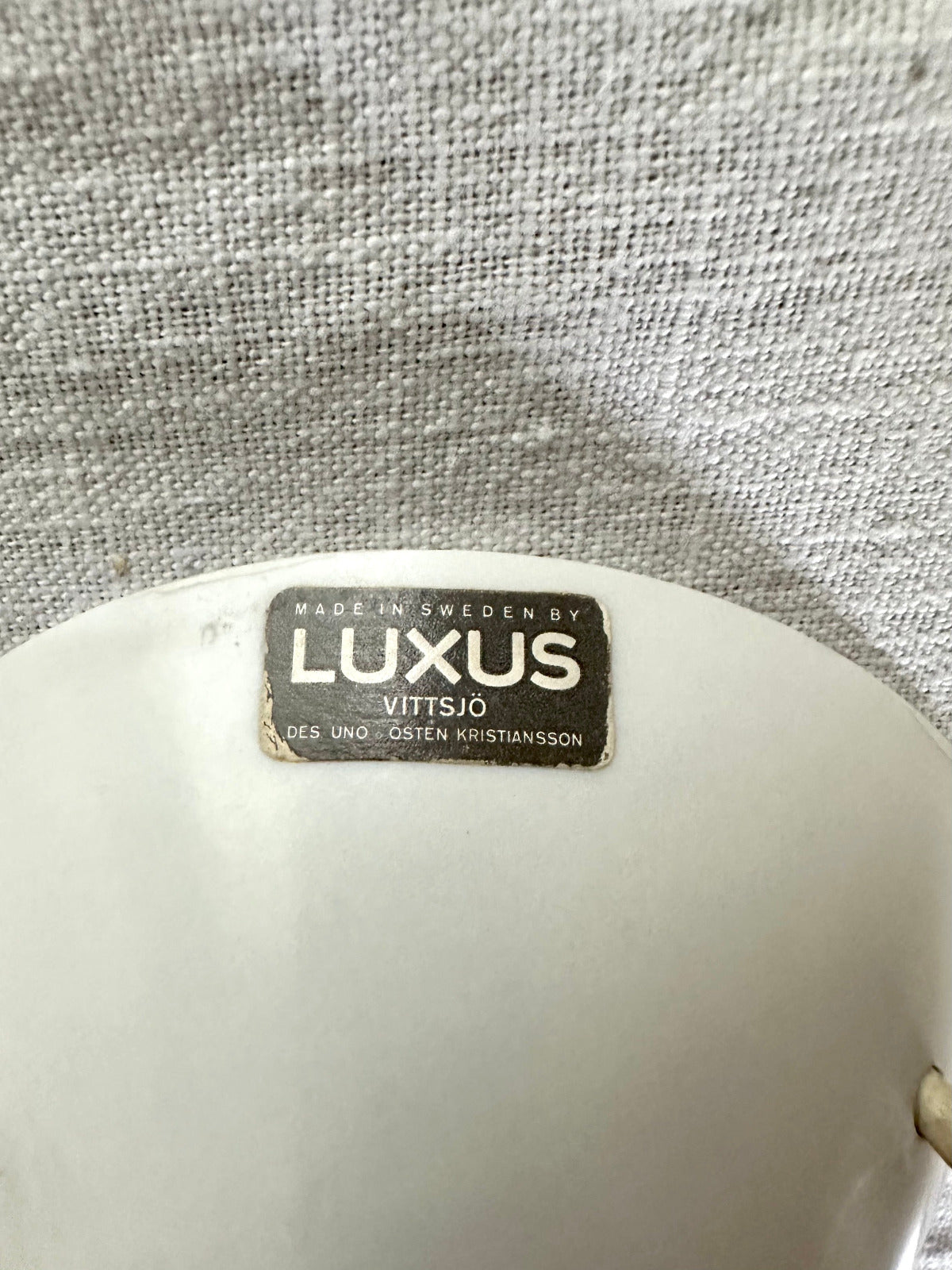 The Swedish furniture and lighting manufacturer Luxus was founded around 1950 by Uno Kristiansson in the town of Vittsjö. Uno's brother Östen, who from 1966 onwards managed and renamed Vittsjö Möbelfabrik AB, his father's production company, soon merged the two companies under the name "Luxus".