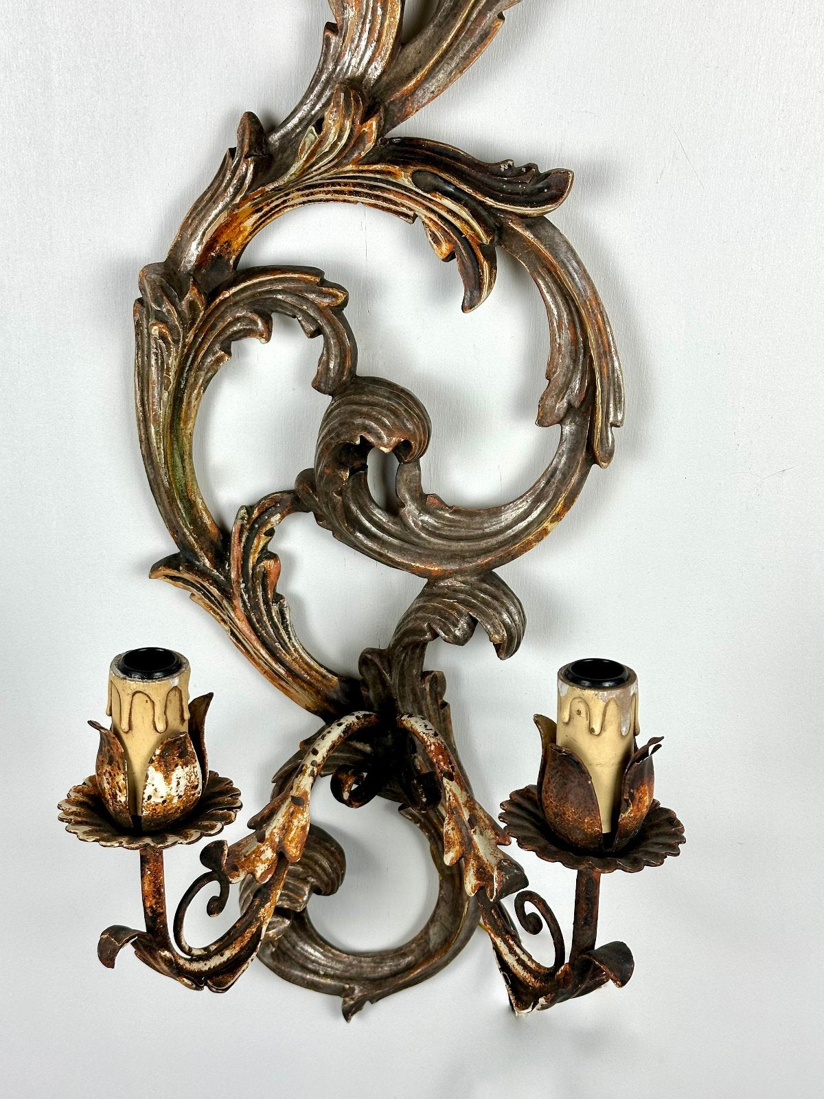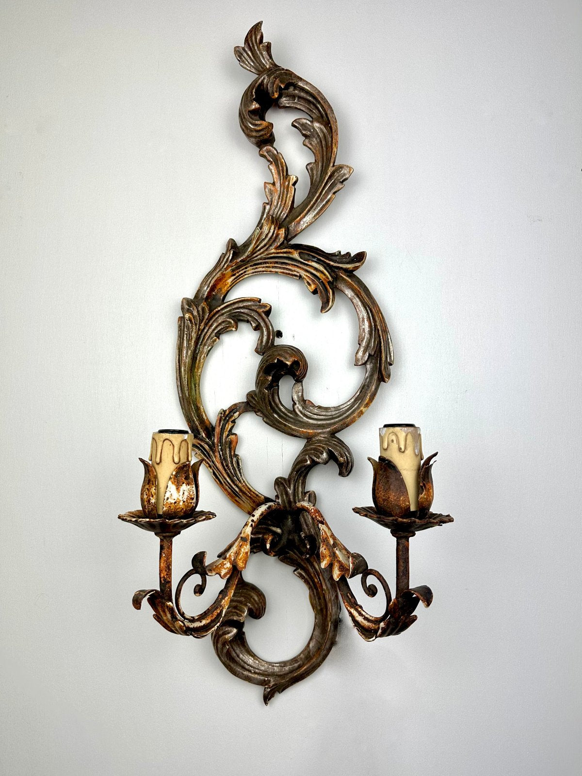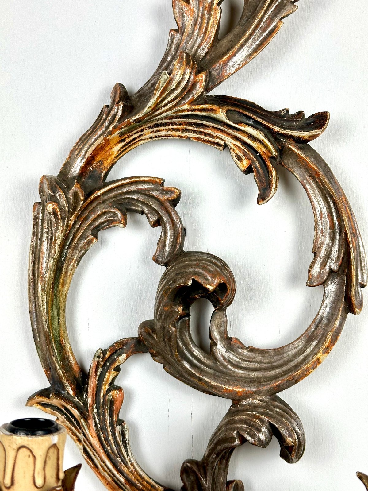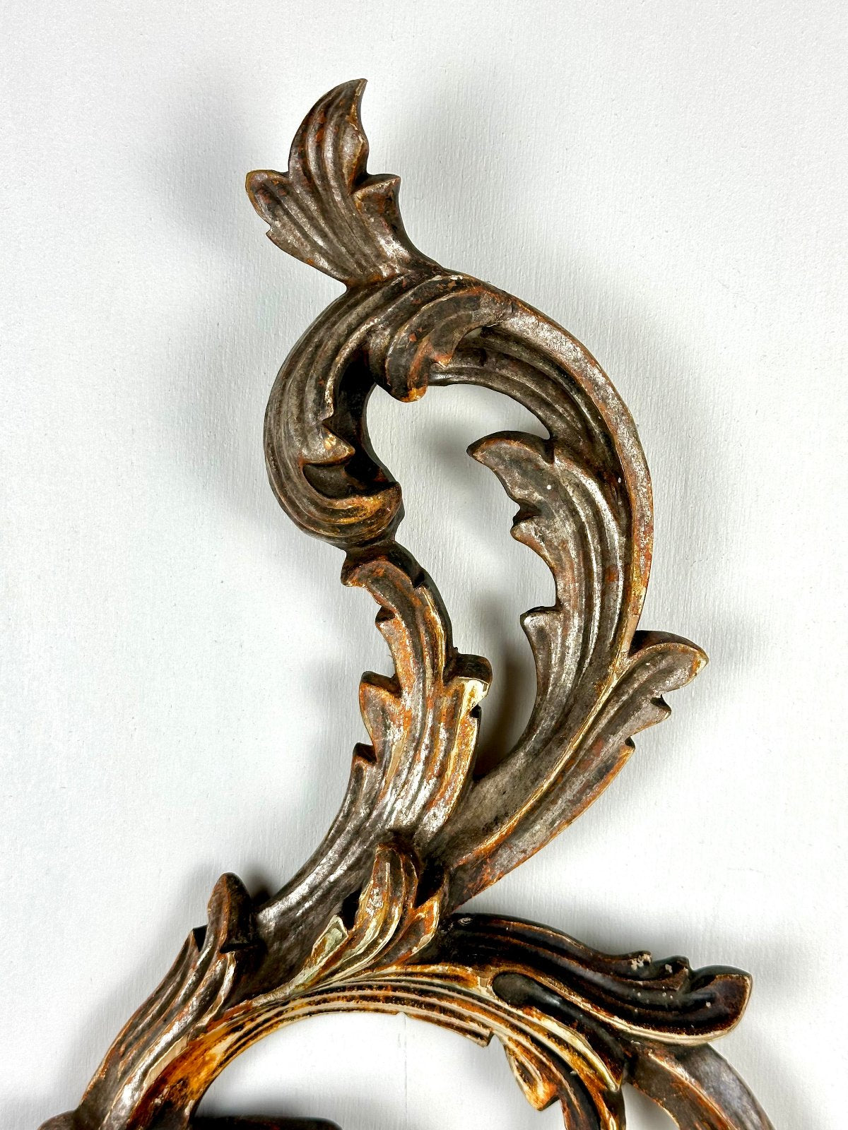 Rococo wall appliqué, carved wood, painted & silver-plated