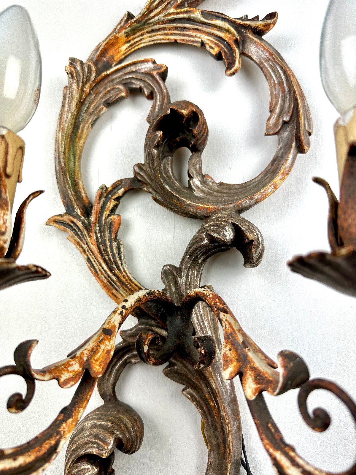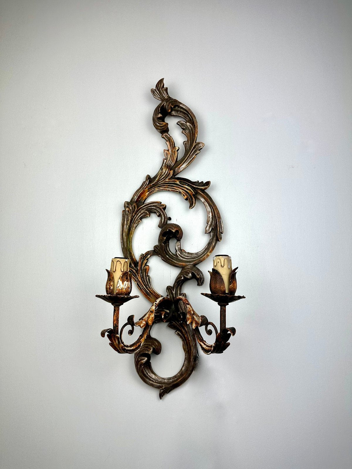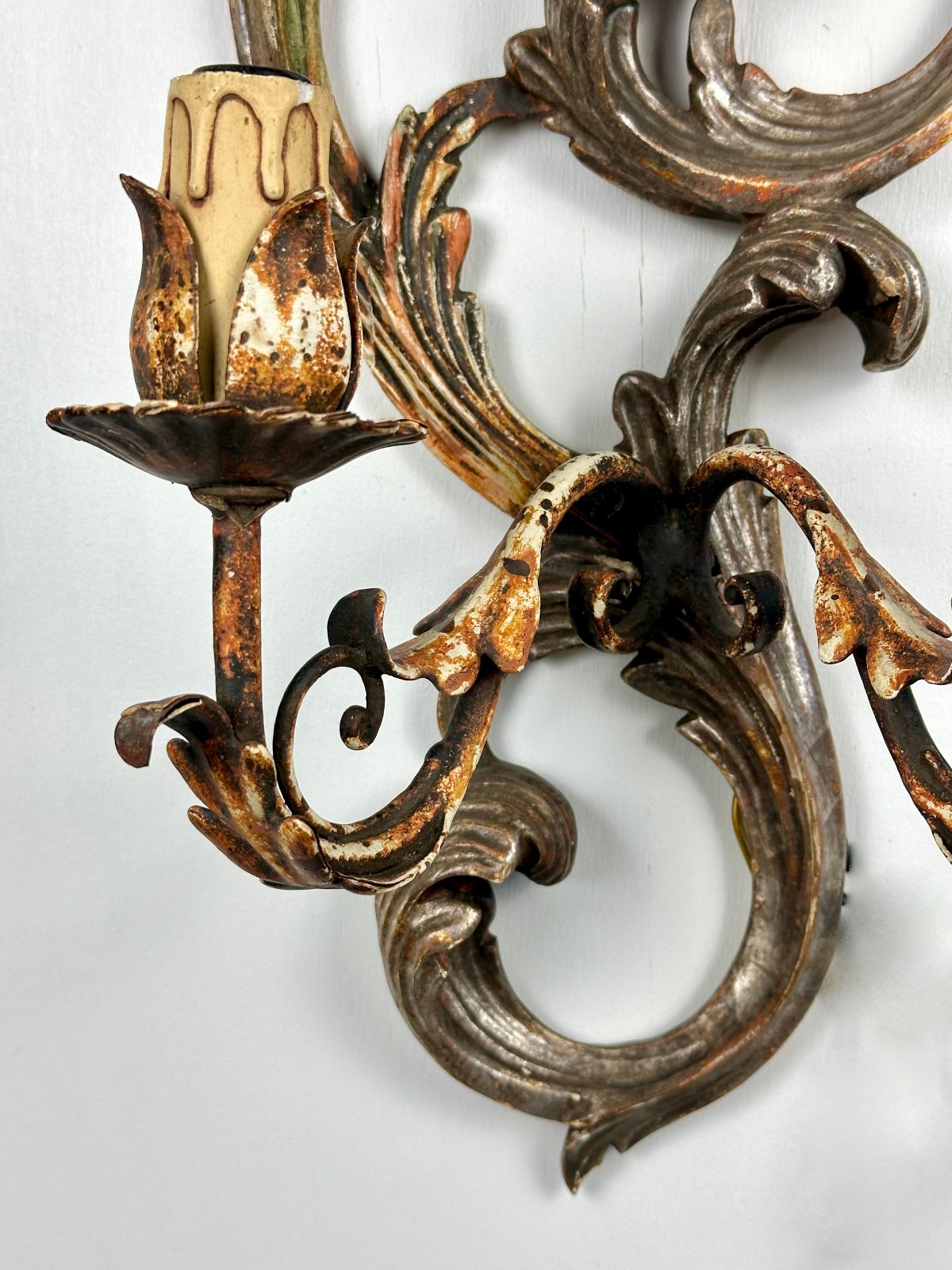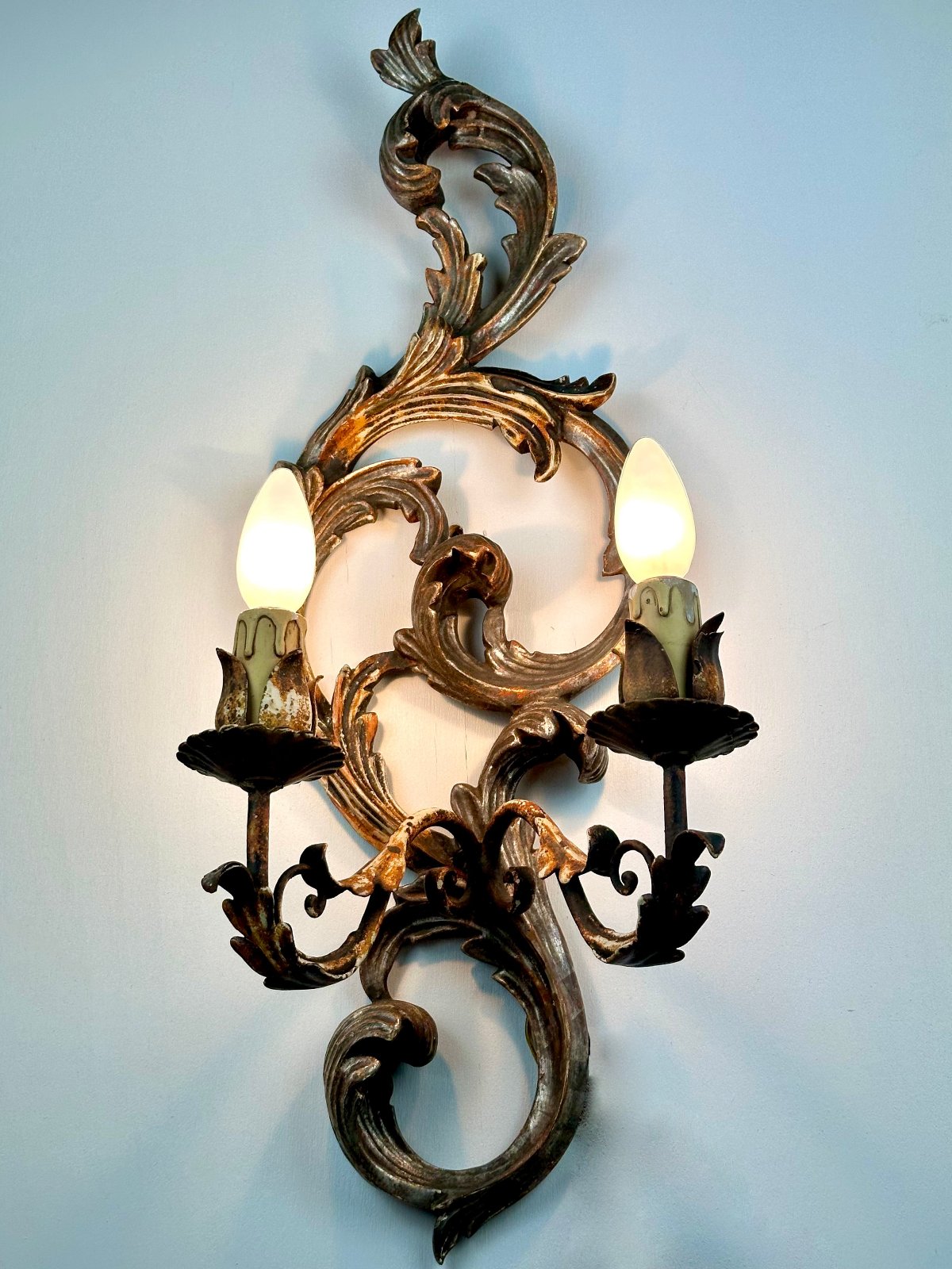 Rococo wall appliqué, carved wood, painted & silver-plated
