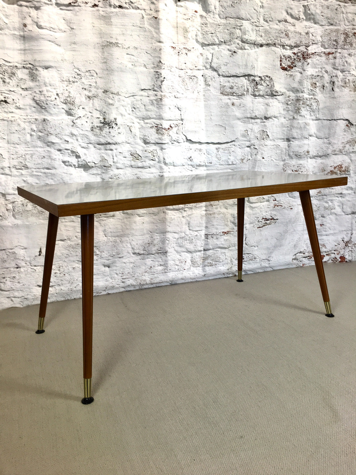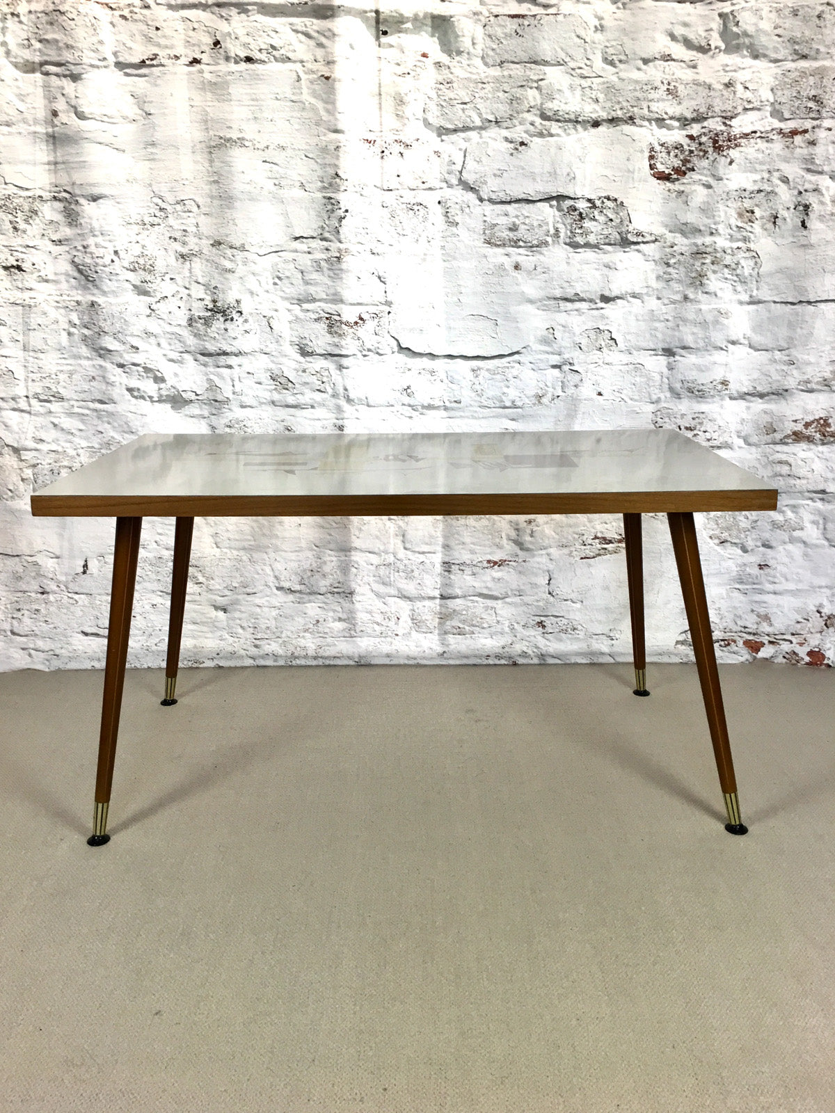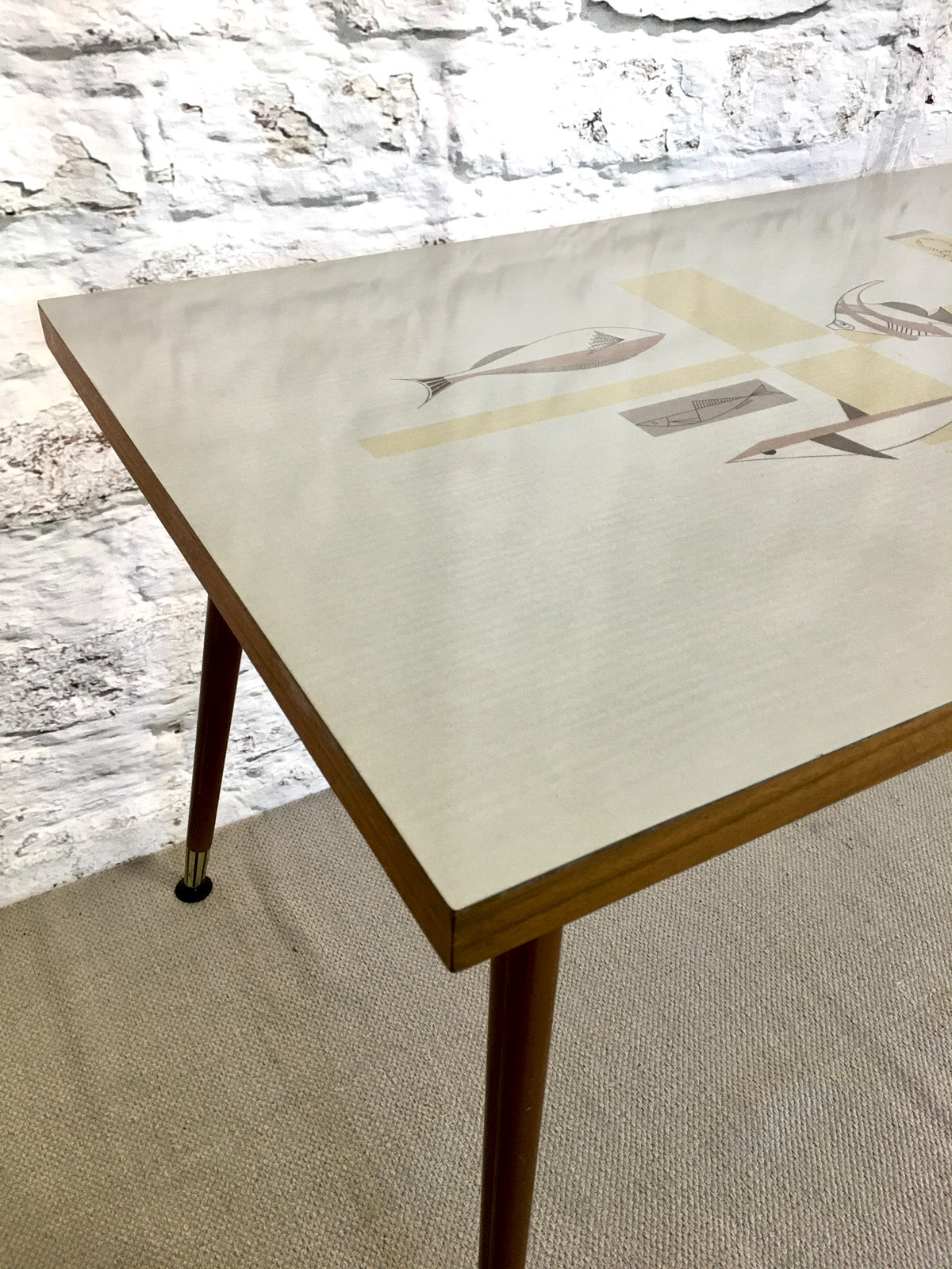 I discovered this light-footed coffee table from the 1950s near Bad Vöslau. When I picked it up, it elegantly splayed its legs and stretched out all four legs. At home, I re-glued the legs and the Formica top. The striking graphic design deserves special mention.
