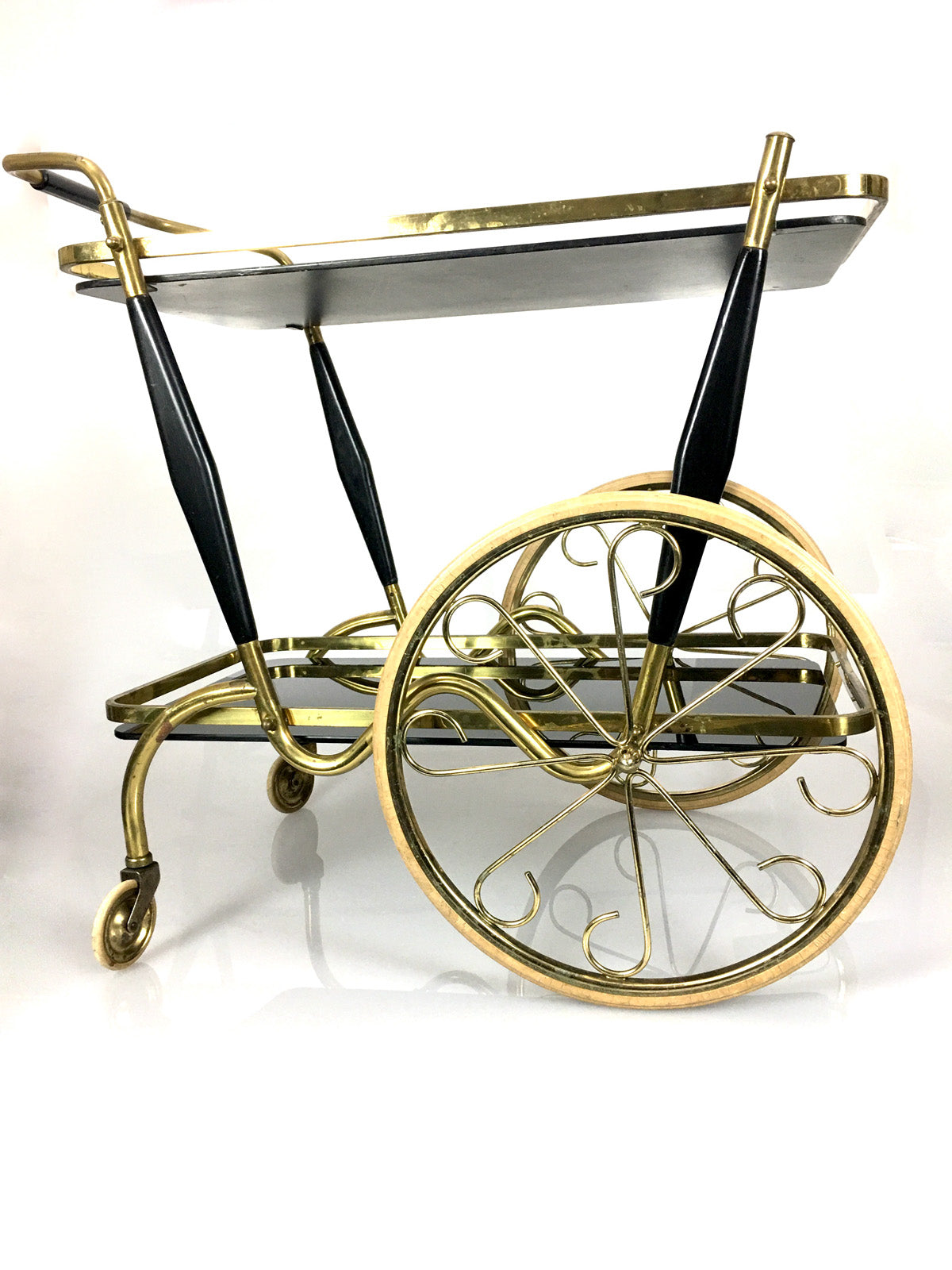 Cesare Lacca was an Italian architect and designer renowned for his exceptional bar trolleys and masterful brasswork. His elegant brass creations are highly sought after by collectors and primarily date from the 1950s and 60s. His most famous tea trolley was produced by Cassina, but he also supplied designs to Arredoluce. His work is concentrated in the 1950s and 60s. Unfortunately, little is known about him beyond that.