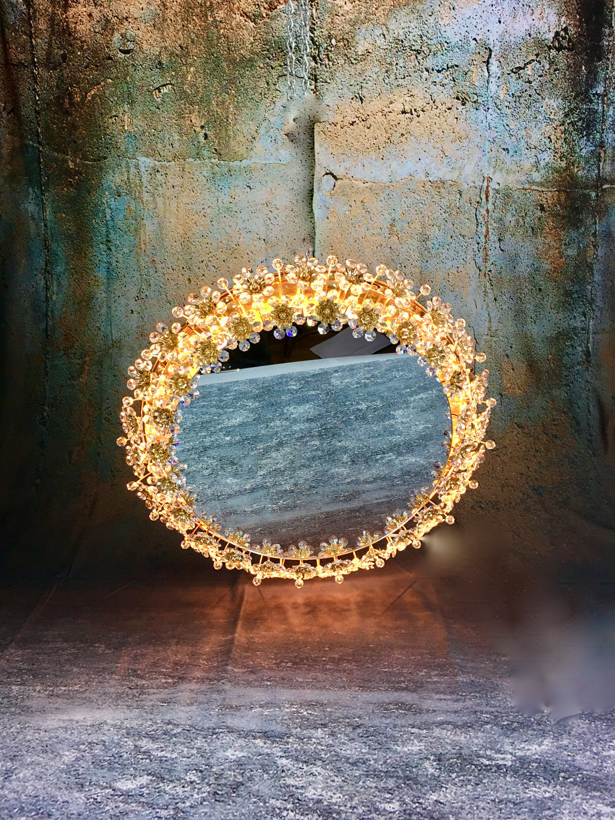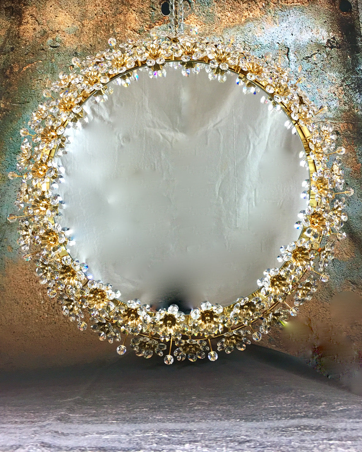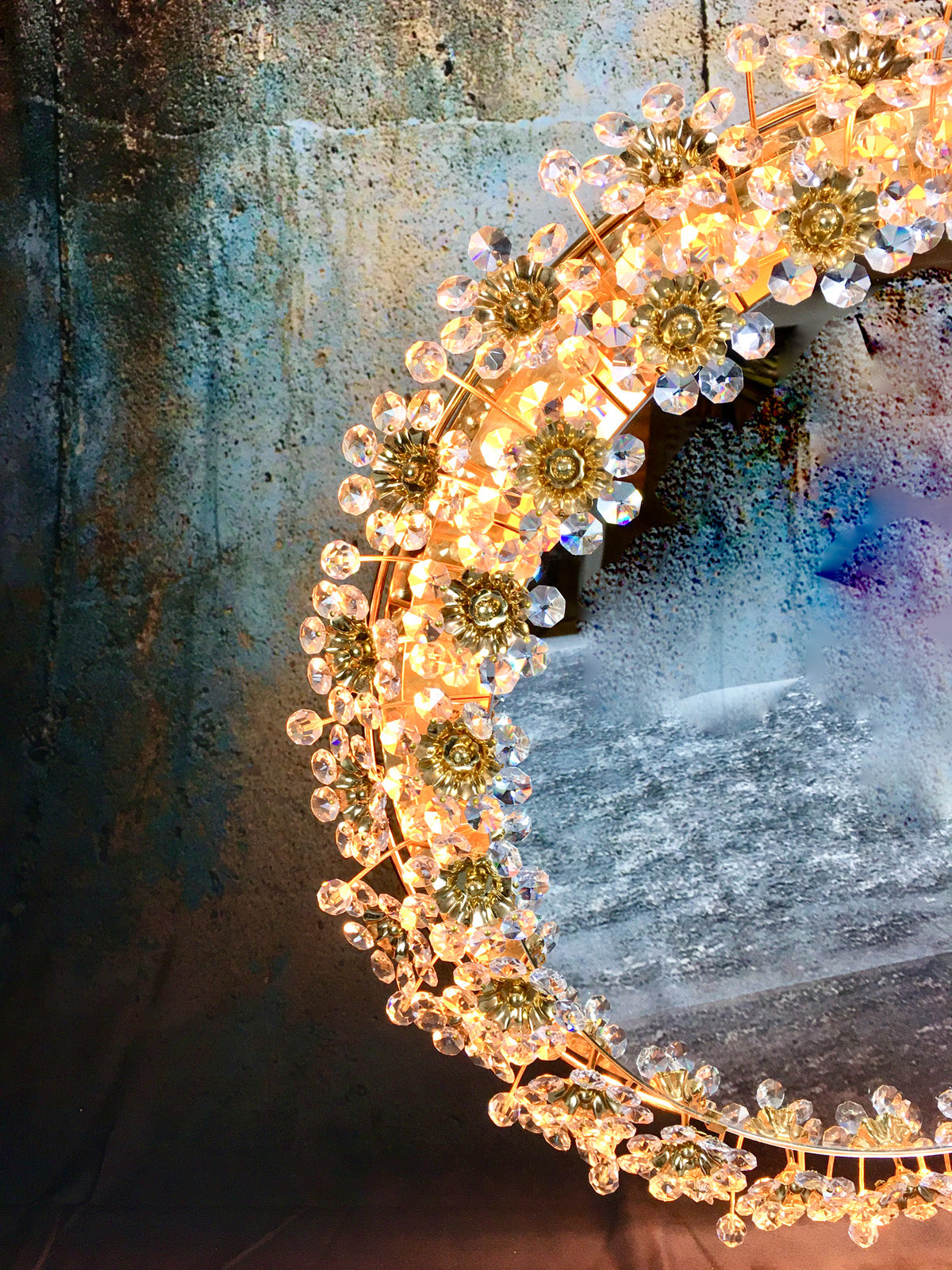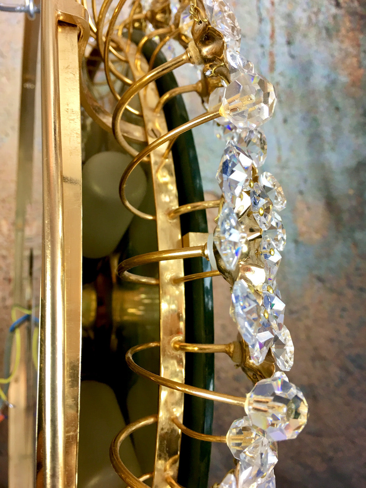 Materials: faceted crystal glass, brass, gold, mirrored glass, Bakelite