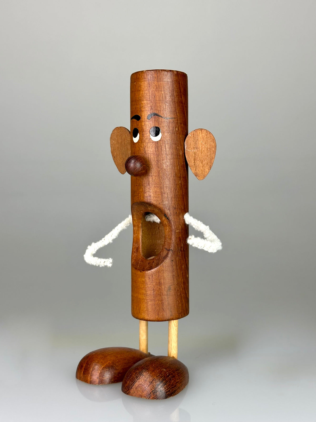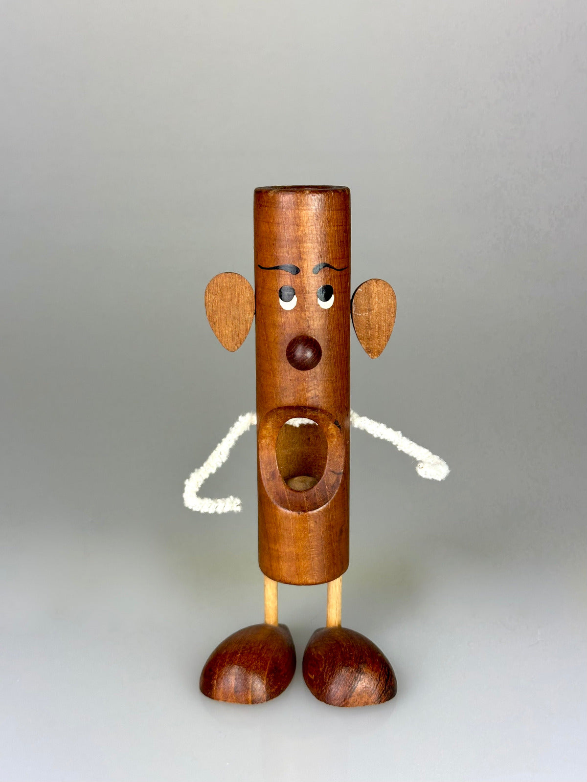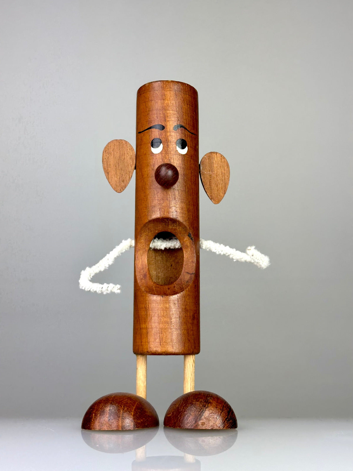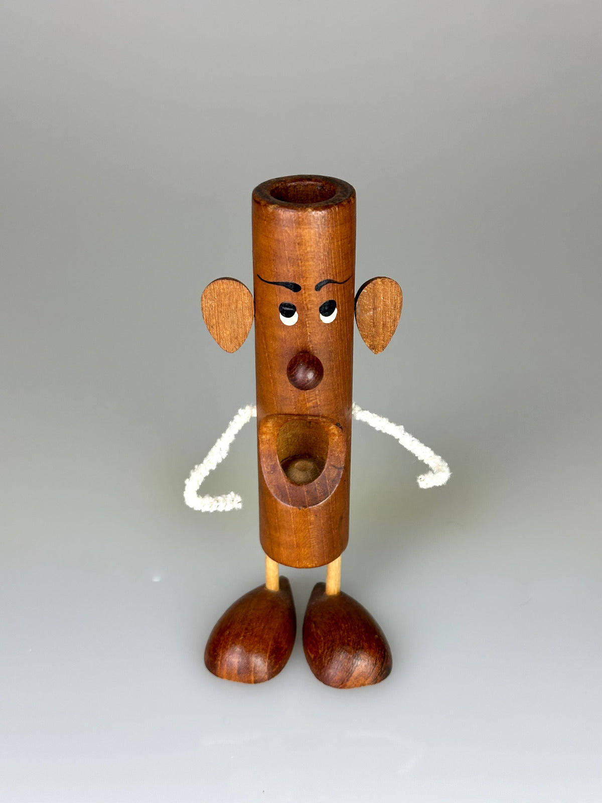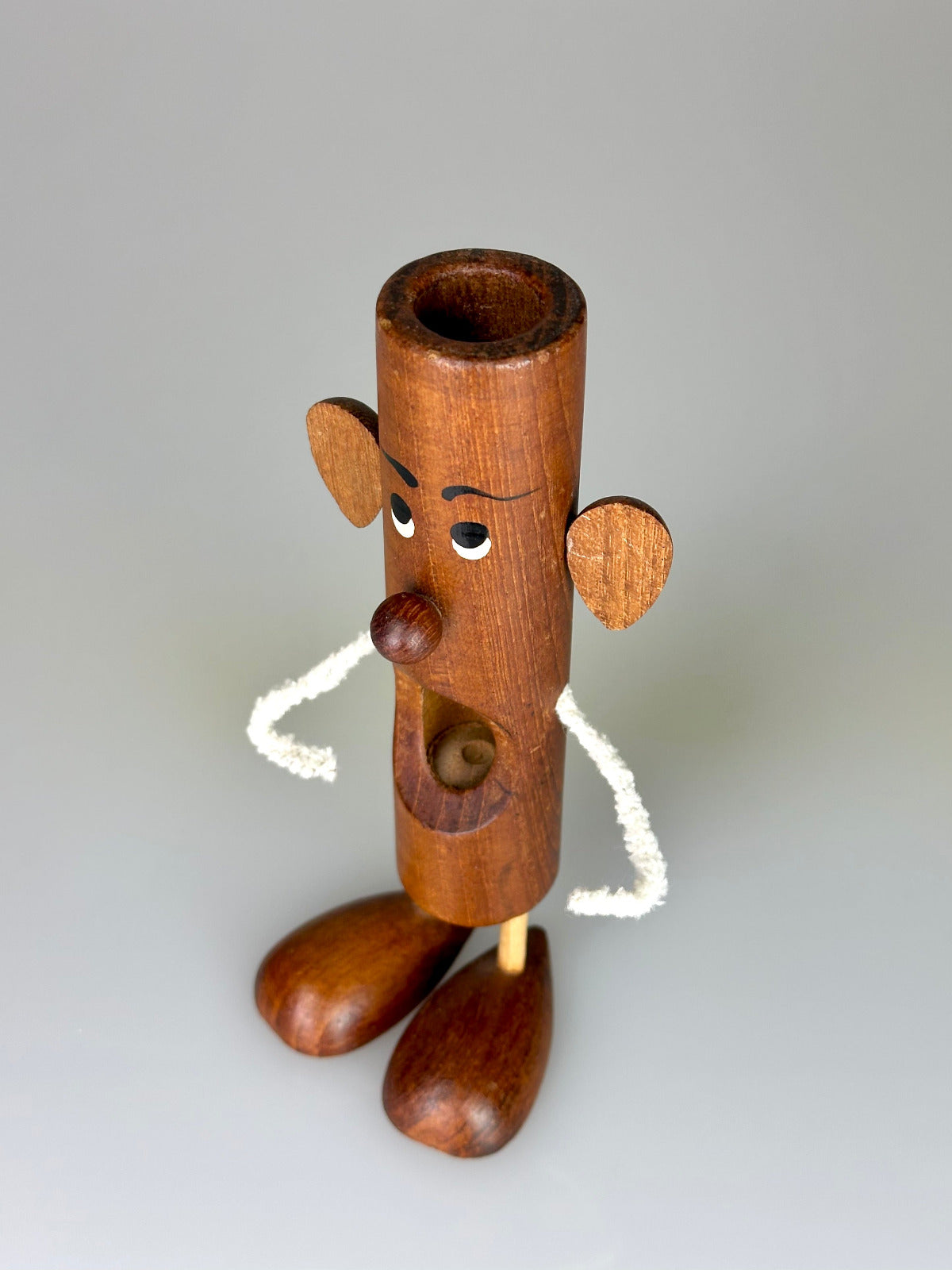 Particularly striking are the arms made of pipe cleaner wire – deliberately simple, flexible, and playfully light. It is precisely this material-focused contrast to the solid wooden form that lends the figure its unmistakable charm and makes the design so characteristic of Bølling's creative wit.